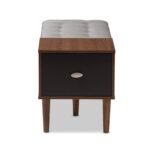 This bench is a fantastic addition to any entryway, mudroom, utility room, or bedroom, offering both style and functionality. With its retro-modern design, the Merrick features a beautiful espresso brown and wood two-tone finish, crafted from MDF.
