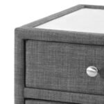 - Elegant mirror-topped fabric drawers