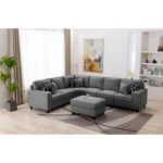 Transform your living space with this stunning 7-piece modular sectional couch, complete with an ottoman. Designed to impress your guests, its cozy dark gray linen fabric and stylish accent pillows will elevate your home’s aesthetic. With generous seating, you’ll be able to host family and friends comfortably, creating a perfect setting for gatherings.
