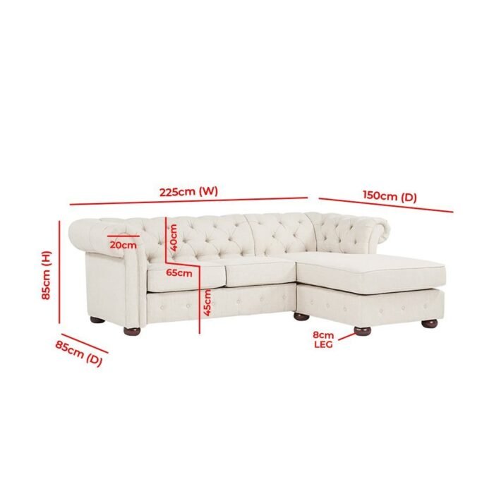 - Overall Size: 225 cm W x 150 cm D x 85 cm H