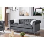 Transform your living room into a stylish sanctuary with the Velvet Tufted Sofa. This eye-catching piece features chic jewel-toned nail heads that add a contemporary flair, making it a standout in any space.
