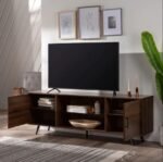The Carrington Mid-Century Modern TV Console brings a fresh take on design with its sleek look and surprising storage options. Featuring open shelving and stylish cupboards, it offers the perfect blend of display space and hidden storage, making it a versatile addition to any room. This contemporary piece not only adds a touch of elegance to your living area but is also sturdy and eco-friendly.