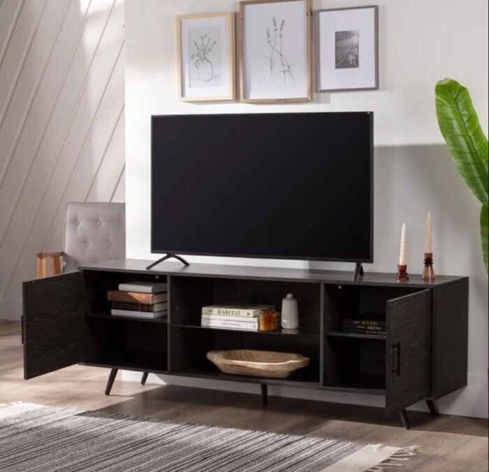 The Carrington Mid-Century Modern TV Console brings a fresh take on design with its sleek look and surprising storage options. Featuring open shelving and stylish cupboards, it offers the perfect blend of display space and hidden storage, making it a versatile addition to any room. This contemporary piece not only adds a touch of elegance to your living area but is also sturdy and eco-friendly.