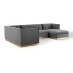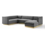 Crafted with a solid engineered frame and a sleek gold-finished stainless steel base, this sectional is both sturdy and elegant. The soft velvet upholstery, combined with dense foam padding, ensures that you and your guests will feel right at home. Plus, the vertical channel tufting adds a touch of luxury that elevates your decor.
