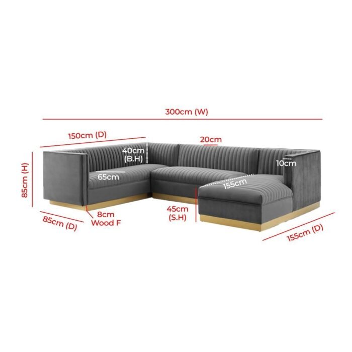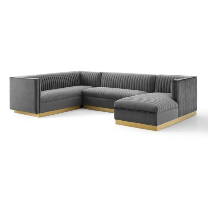 Crafted with a solid engineered frame and a sleek gold-finished stainless steel base, this sectional is both sturdy and elegant. The soft velvet upholstery, combined with dense foam padding, ensures that you and your guests will feel right at home. Plus, the vertical channel tufting adds a touch of luxury that elevates your decor.