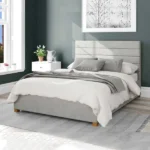 Transform your bedroom into a sanctuary of elegance with this beautifully upholstered bed frame. Covered from base to the impressive tall headboard in rich fabric, it exudes refinement and luxury. The tailored broad horizontal channels add a touch of modern sophistication, seamlessly matching the stylish lines of the headboard.