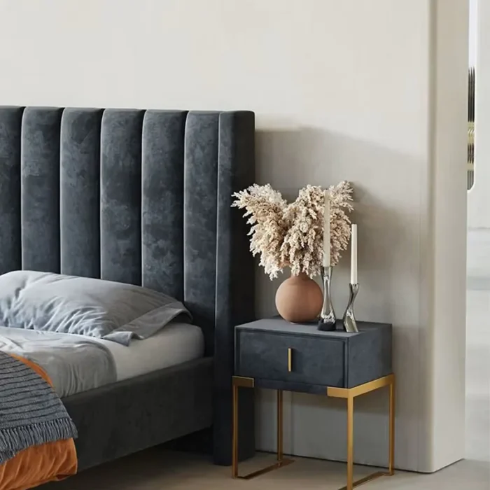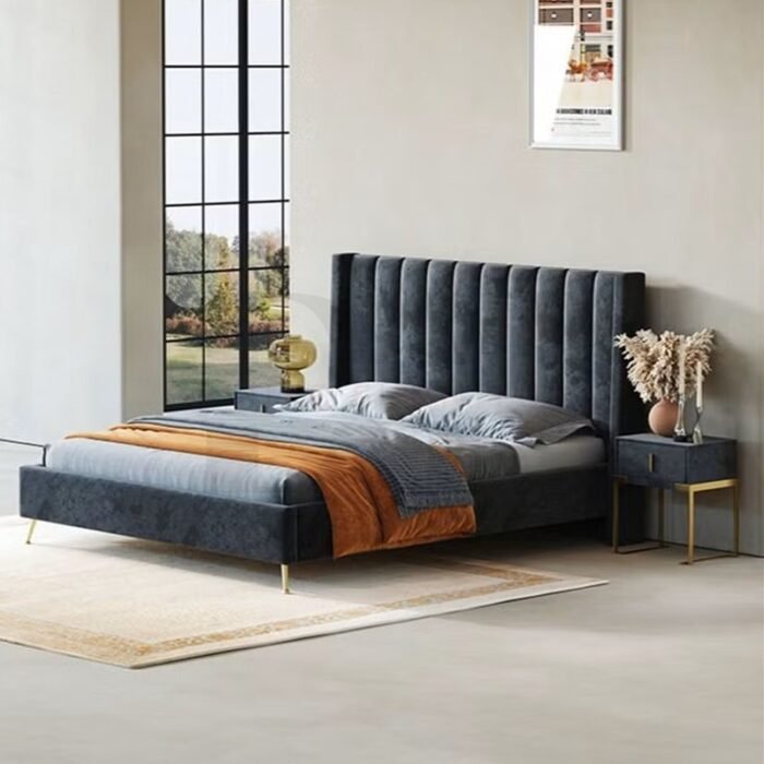 Elevate your bedroom aesthetic with this stunning bed frame, featuring a beautifully upholstered headboard and base. Its luxurious design infuses any space with a sense of elegance and sophistication, while the deep teal color adds a contemporary flair that’s effortlessly chic.