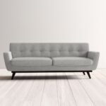 This couch is the perfect centerpiece for your mid-century modern living space. With its button-tufted back and stylish flared armrests, it brings a sleek and polished look to any room. The design features a comfortable, securely upholstered back and loose foam-filled cushions, supported by sinuous springs for a cozy feel. Plus, the polyester blend fabric is not only soft but also easy to maintain—both the seat cushions and covers are removable, making cleaning a breeze.