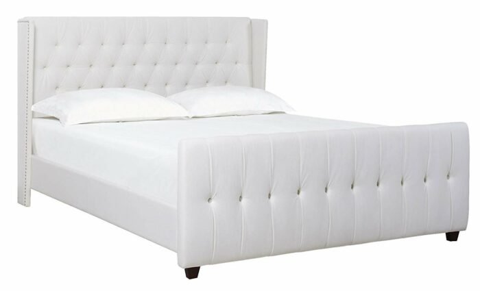 Transform your space with this stunning bed that combines elegance and comfort. Featuring a classic wingback design, button tufting, and nail head accents, it seamlessly enhances any decor style. Available in beige, dark grey, or light grey, this bed fits perfectly with your aesthetic.