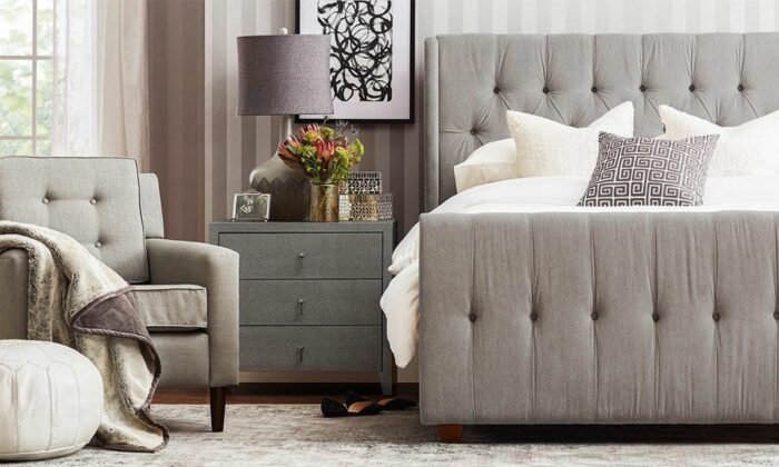Upholstered Bed in Light Grey Color