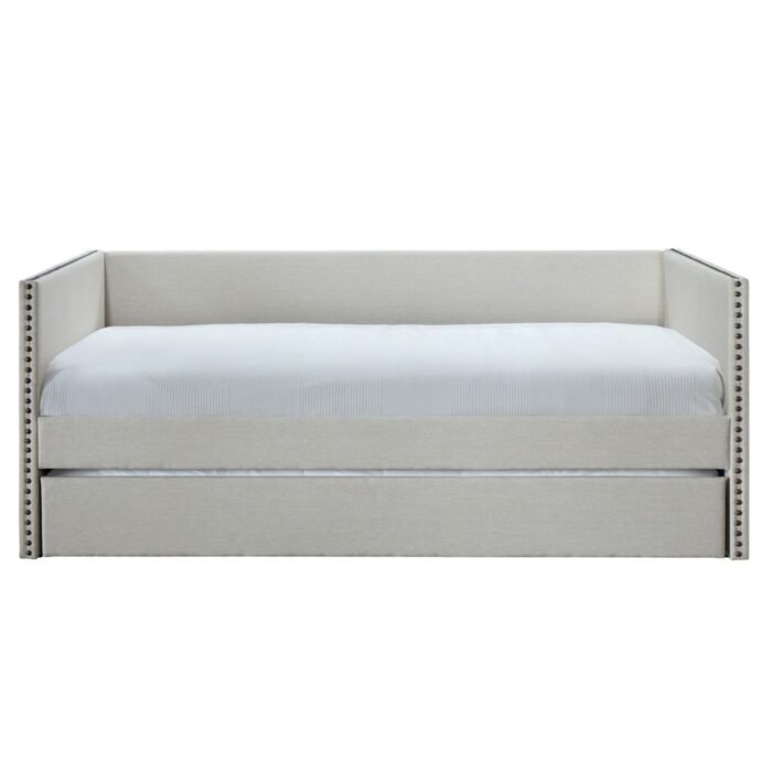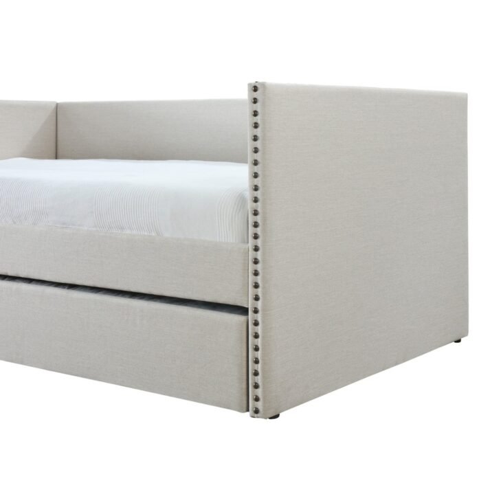 Transform your space with this stylish daybed, designed for both comfort and versatility. Featuring a sleek contemporary shape, elegant oil-rubbed bronze nail head trim, and a cozy pull-out trundle, it’s perfect for accommodating extra guests. Choose from a chic grey or beige linen-blend fabric to suit your decor.