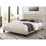 The Upholstered Bed features a clean and simple design, enhanced by traditional tufted button accents. Its cushioned fabric headboard provides both comfort and style, making it a perfect addition to any bedroom. Available in Twin, Full, and Queen sizes, it comes in versatile grey and beige hues to suit your décor.