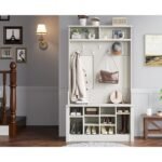 The hall tree’s open frame and clean lines draw inspiration from modern line art, adding a stylish touch to any room. The elegant Light Oak & White finish beautifully complements the wood frame, while the bench provides a perfect spot to showcase your favorite items. With 10 open compartments and 7 metal hooks, you have plenty of opportunities to express your unique style and keep everything organized.
