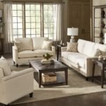 Make a stylish statement in your living space with this ivory-upholstered loveseat or couch. The soft, semi-soft seat cushion is wrapped in luxurious ivory linen, bringing a cozy, rustic charm to your home. The sparkling brass nail head trim adds just the right touch of elegance, while the sturdy wood frame promises lasting durability for years to come.