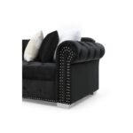 Enhance your living room with this stunning sofa and chaise set, designed to be a stylish centerpiece. With its classic chesterfield silhouette, rolled arms, and wooden feet, it brings a timeless elegance to any space. The luxurious velvet upholstery adds a rich texture, while the button tufting and nailhead trim offer distinctive accents that elevate the design.