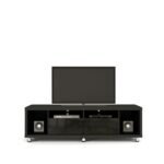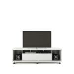 Looking for a TV stand that fits perfectly in your cozy living room? This stylish and lightweight piece is just what you need! With its compact design, it effortlessly combines form and function. You’ll find two deep side cubbyholes—perfect for your speakers—along with two shelves and two handy sliding drawers for all your media essentials.