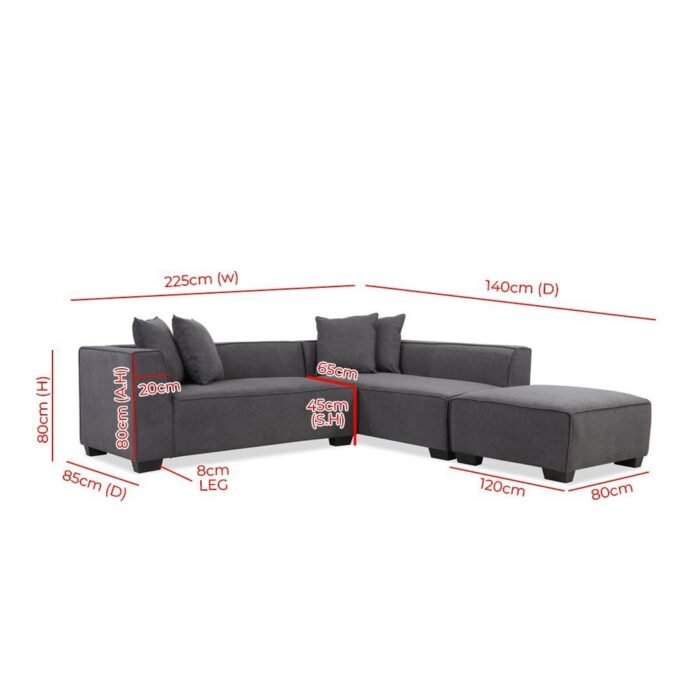 • Overall Size: 225 cm W x 140 cm D x 80 cm H