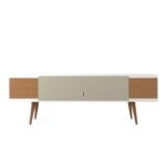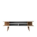 Elevate your living space with this stylish TV stand that beautifully blends quality construction, striking design, and modern functionality. Featuring elegant splayed wooden legs and four spacious shelves, it serves as a stunning centerpiece for your entertainment area.