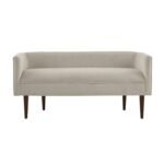 Elevate your living space with this beautifully designed accent bench, perfect for your living room or entryway. Upholstered in luxurious cream velvet, it boasts a sleek low back and sides that give it a chic, transitional style. The solid wood legs, finished in a rich dark brown, create a striking contrast that enhances its elegance.