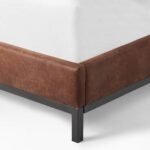 Transform your bedroom into a luxurious retreat with this stunning fabric bed frame, elegantly covered in rich faux leather from the footboard to the impressive tall headboard. Its sophisticated design brings a modern touch to any space, while the sleek gunmetal-finished iron legs add a light and contemporary feel.