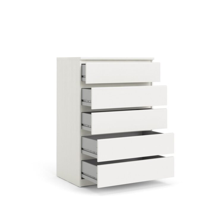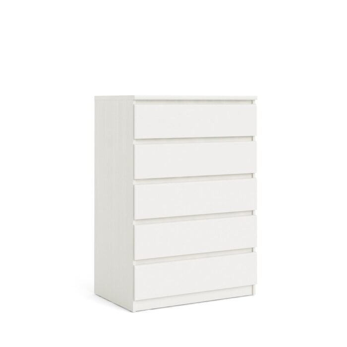 This charming dresser combines streamlined lines with a modern design, making it a stylish addition to any space. With five spacious, high-sided drawers, it offers ample room for your favorite items, helping you keep your living area organized and clutter-free. The smooth, fade-resistant foil surface adds to its appeal, making it both functional and attractive.