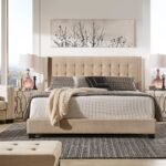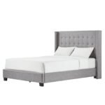 Transform your bedroom into a sophisticated retreat with this stunning wingback bed. Its classic elegance is enhanced by button tufting and two rows of silver nail head trim, making it a perfect addition to any decor. Available in beige, dark grey, or light grey, this bed effortlessly complements your personal style.