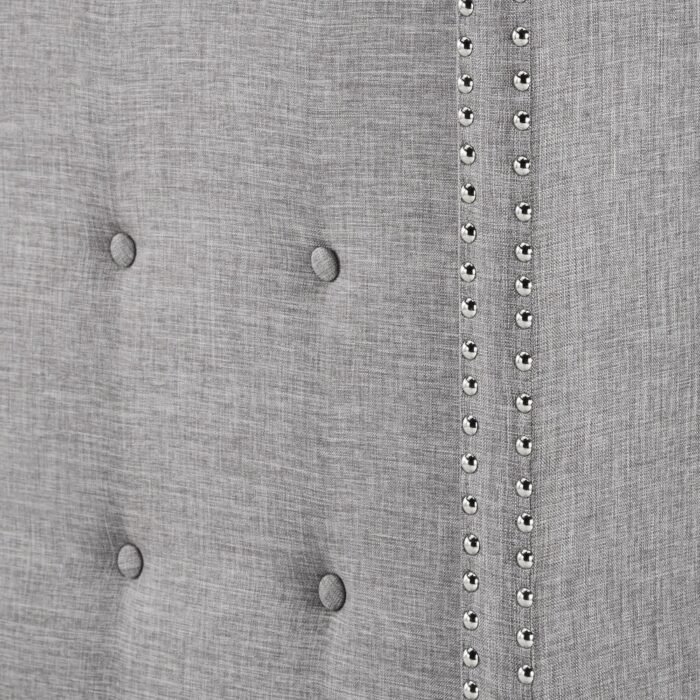 - Design Details: Wingback style with synchronized button tufting and silver nail head trim for added flair.
