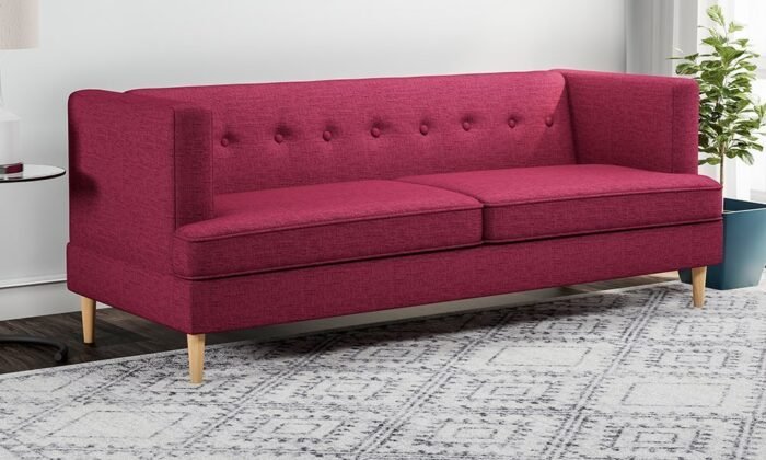 This couch is the ideal centerpiece for your mid-century modern living space. With its stylish button-tufted back and sleek flared armrests, it brings a touch of elegance to any room. The loose, foam-filled cushions offer both comfort and support, while the securely upholstered back ensures durability. Crafted from a soft polyester-blend fabric, it’s as cozy as it is chic.