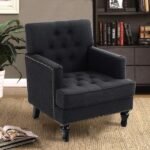 This linen fabric armchair adds a touch of refinement and sophistication to your home while reflecting your personal style. Versatile enough for any setting, the button-tufted black linen upholstery offers a timeless modern vintage appeal. With a welcoming nail head trim and beautifully crafted wooden legs, this chair enhances your decor beautifully.
