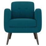 Introducing this stylish contemporary armchair that embodies mid-century design. With its soft, comfortable seats covered in durable, easy-to-clean polyester fabric, this chair is perfect for both style and practicality. The walnut-finished angled legs enhance its fashionable retro-modern appeal, making it a striking addition to any space.