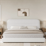 Transform your bedroom with this luxurious boucle bed frame—where comfort meets contemporary style.