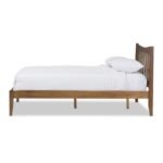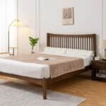 - Design: Platform bed with a slatted headboard and curvy shape.