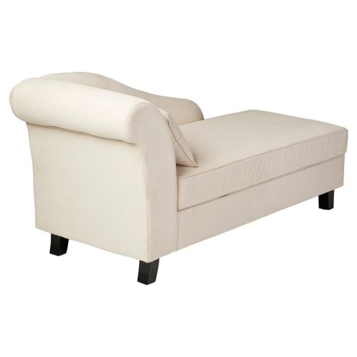 This modern chaise lounge offers a refreshing take on classic design. With its sleek lines, gently sloping arm, and rolled back, it invites relaxation and conversation. Built on a sturdy wood frame with foam filling and supportive coil springs, this piece ensures both comfort and durability. The four black-finished feet add a stylish touch, and the included toss pillow enhances its cozy feel.