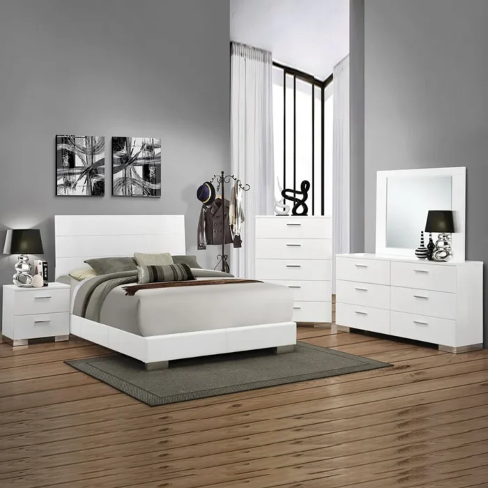Elevate your guest room with this stunning white bed, featuring a sleek polyurethane coating polished to a high gloss finish. The modern design includes a headboard with blue touch LED illumination, creating a vibrant and inviting atmosphere. Its low-profile footboard-style frame seamlessly complements any existing décor, adding a contemporary touch to your space.