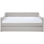 Transform your room into a cozy retreat for you and a guest with a tufted daybed featuring a handy trundle. The gentle curves and classic diamond tufting add a touch of charm, making it a great fit for a variety of styles. This daybed accommodates two standard twin mattresses, ensuring both comfort and a restful night.