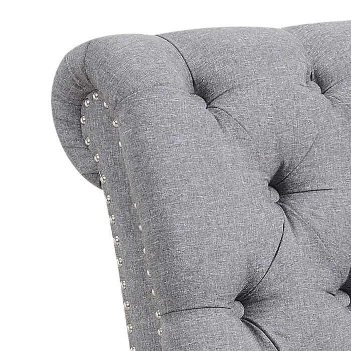 With its stunning hand-button deep tufting and soft polyester linen blend fabric, it invites you to relax in style. The individually set silver nail heads add a chic accent, making it the ideal spot for unwinding after a long day.