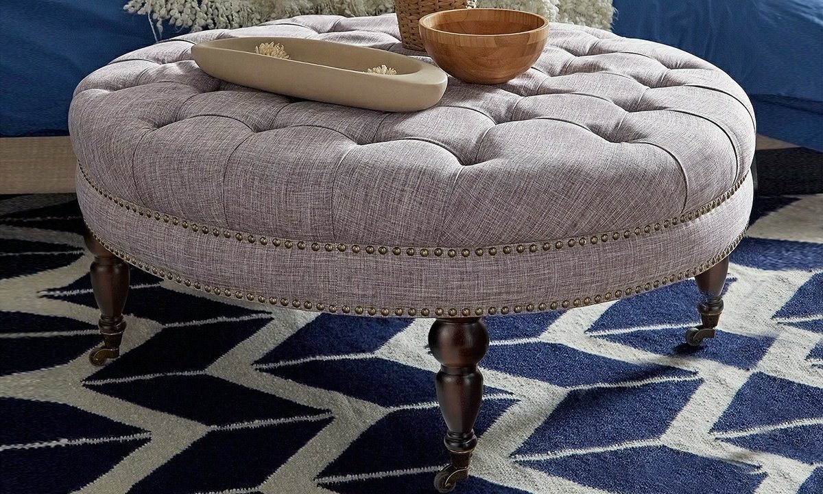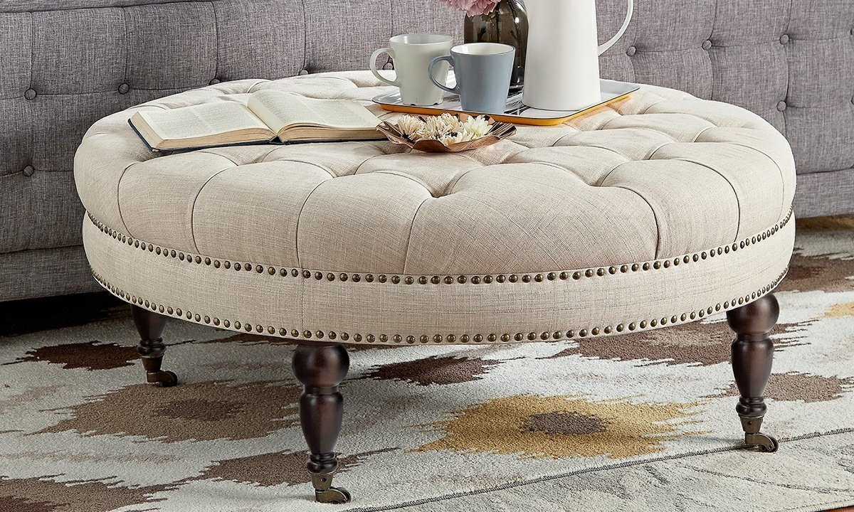 This tufted ottoman is a stylish alternative to traditional wood or metal coffee tables. Its classic button-tufted design and dark-finished legs add a refined touch to both classic and transitional decor. Plus, it doubles as extra seating for guests, making it a versatile addition to your space.