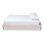 Elevate your bedroom’s style with the luxurious Volden bed frame. Crafted from solid wood and wrapped in plush, velvety upholstery, this bed promises ultimate comfort. Designed with both aesthetics and functionality in mind, it features elegant tapering wood legs accented with opulent gold-tone metal tips, adding a touch of sophistication while providing extra storage space.