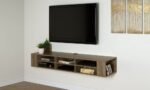 Transform your living space with this stunning wall-mounted media console, designed to create a modern and airy atmosphere. Its sleek, high-end look not only enhances your decor but also frees up valuable floor space. Please note that it doesn’t support a wall-mounted TV, so make sure to install your TV separately.