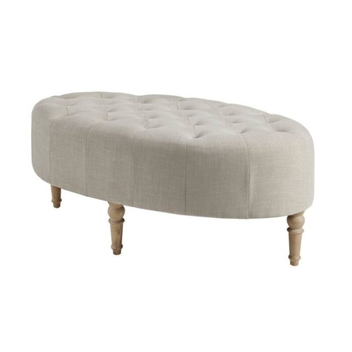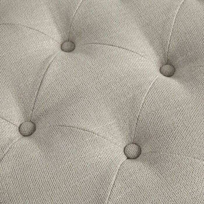 Elevate your living space with the Clara Accent Ottoman. Its button-tufted top, wrapped in a chic linen-like fabric, adds a touch of sophistication to any room. The solid wood legs, with a reclaimed natural finish, bring a warm, farmhouse-inspired feel that beautifully complements the upholstery.